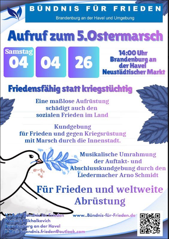 8. April 10:00 Uhr 2. Ostermarsch in Brandenburg an der Havel, Neustädtischer Markt